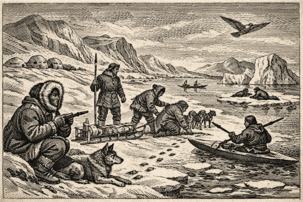 Posteriormente, desde Alaska llegó el pueblo Thule, antecesor directo de los inuits actuales. Estos grupos dominaban técnicas avanzadas de caza y navegación, como el uso del kayak, y cruzaron el Ártico canadiense hasta entrar en Groenlandia por el norte. Eran pueblos nómadas, expertos en la supervivencia en el hielo, que dominaron la isla durante milenios.